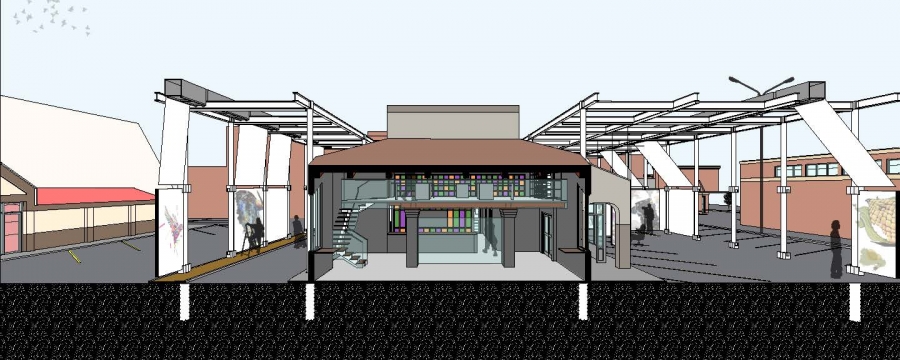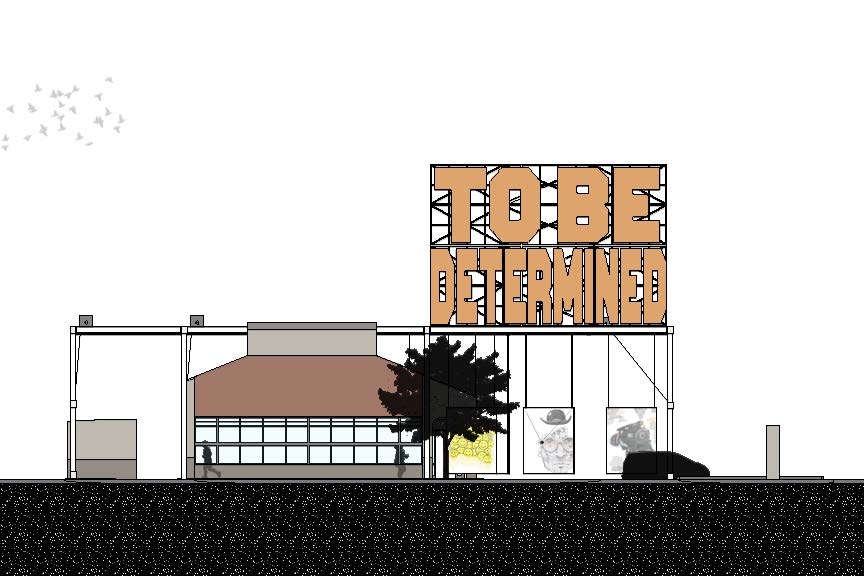 space where all people felt welcomed to be. Observing and making art should be something that is implemented and available to all. To Be Determined is a graffiti workshop that is a place to showcase, create art, and even take art home with you. The building is located in downtown Lincoln where a fast-food restaurant used to occupy. Since the pandemic, buildings, much like the Amigos downtown, have been abandoned. We decided to focus on and repurpose abandoned fast-food buildings. Much like how drive-thrus have benefited the food industry, TBD fulfills that role in the art industry. This “drive-thru” art experience introduces a new aspect to public art and community events. The interior of the building is mostly used for storage, help, and cleaning stations with the outside being the main workshop, where the art creating happens.